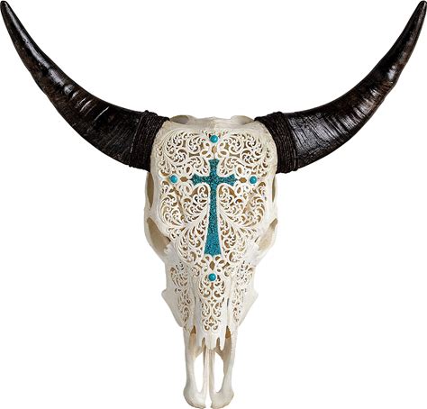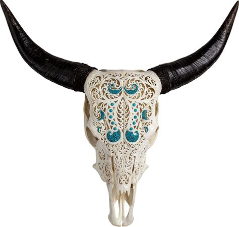 Hand Carved Cow Skull - Turquoise Dreaming Standard Horns, Authentic Animal Skull Decor, Skull Bliss
