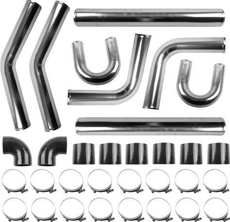 3" Intercooler Kit Universal Aluminum Turbo Intercooler Piping U-Pipe Kit With Coupler And T-Clamps DIY Custom Pipe 32Pcs