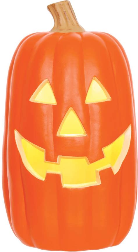 Seasons Yellow 1 Ct 16 in. LED Prelit Scary Pumpkin Halloween Decor