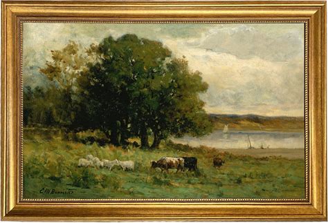 Cows And Sheep In A Landscape Framed Oil Painting Print On Canvas, Vintage Pastoral Art