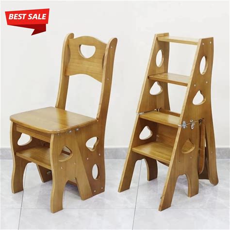 Wooden Folding Library Ladder Chair, 4-Storey Portable Multi-Function Step Stool, Indoor And Outdoor