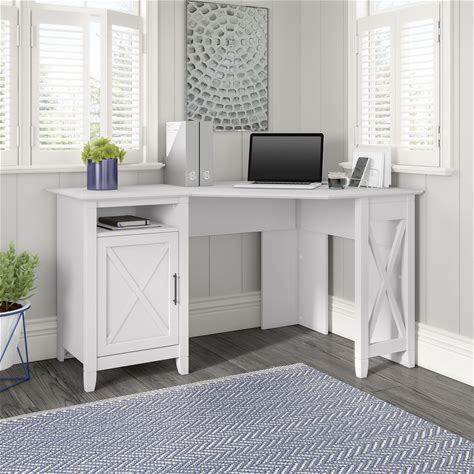 Bush Home Cabot 60W L Shaped Computer Desk With Hutch And 5 Shelf Bookcase In Linen White Oak