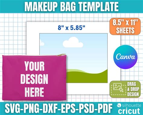 Makeup Bag Template, Comesticbag, Make Bag Svg, Make Bag For Sublimation, Canva, SVG, DXF, Ms Word Docx, Png, Psd, 8.5"X11" Sheet, Printable
