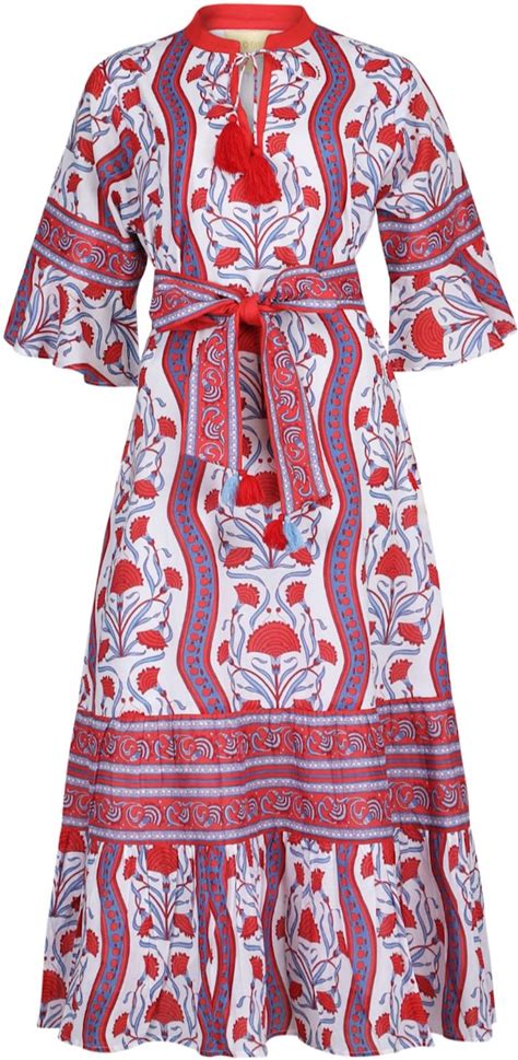 Fine Print Kaftan Style Summer V-Neck Maxi Ladies Italian Lagenlook Maxi Dress Tassels.