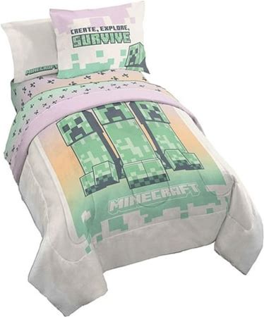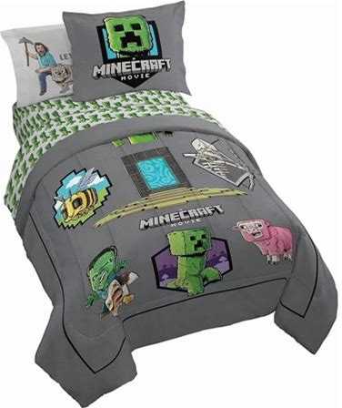 Jay Franco Minecraft 7Pc Full Bed Set - Includes Comforter, Sheet Set & Decorative Pillow Shams - Features Creeper, Ghost, Zombie & Enderman