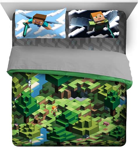 Minecraft Day & Night 7 Piece Queen Bed Set With Sham, 100% Microfiber, Gaming Bedding