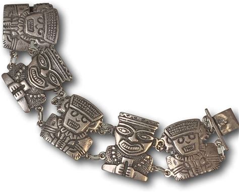 Vintage Peru 900 Coin Silver Aztec Warrior Gods Native Panel Statement Bracelet