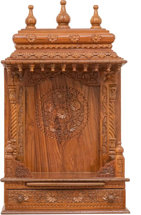 Wooden Engraved Home Pooja Mandir by Pooja Bazar