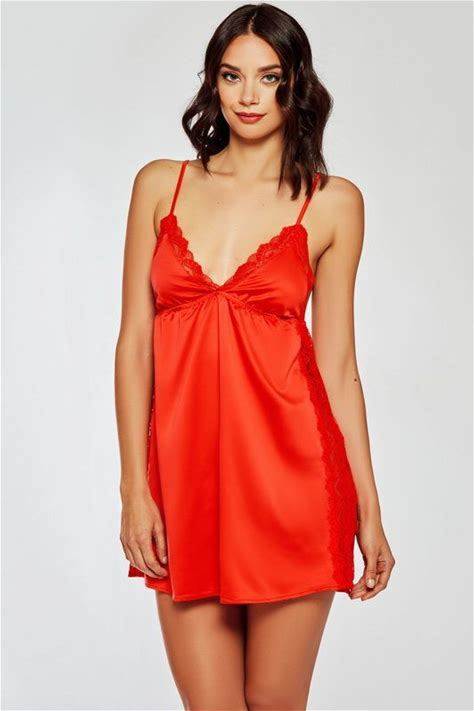 Red Satin Celina Lingerie Chemise - Red - L