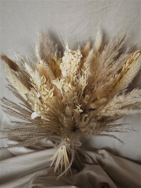 Elegant Dried Flower Wedding Bouquet, Rustic Beige Flowers For Bride, Boho Country Dry Bridal Bouquet, Eternal Farmhouse Wedding Bouquets
