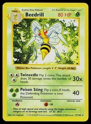 Pokemon Card - Beedrill Base Set (Shadowless) 17/102 Rare