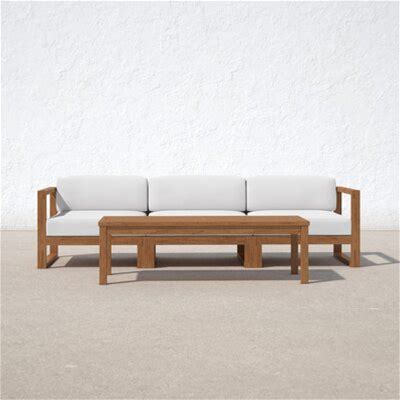 Louver Outdoor Acacia Wood Loveseat And Coffee Table Set With Cushions For Balcony Garden Poolside 2