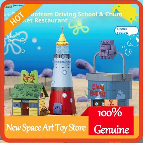 Areax Spongebob Bikini Bottom Driving School Plankton Chum Bucket Building Blocks Blind Box Toy Kids