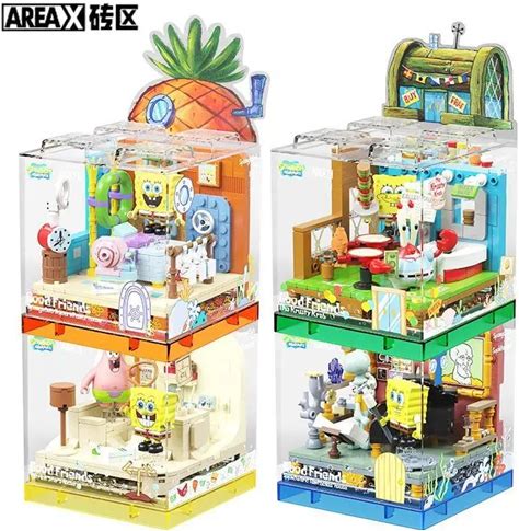 Spongebob Building Blocks Patrick Star Krusty Krab Squidward Tentacles Room Model Bricks Set Desktop