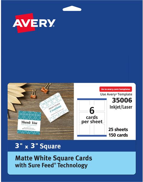 Avery Square Cards, Sure Feed Technology, 3" X 3", Matte White, 150 Square Cards Total, Print-To-The-Edge, Laser/Inkjet Printable (35006)