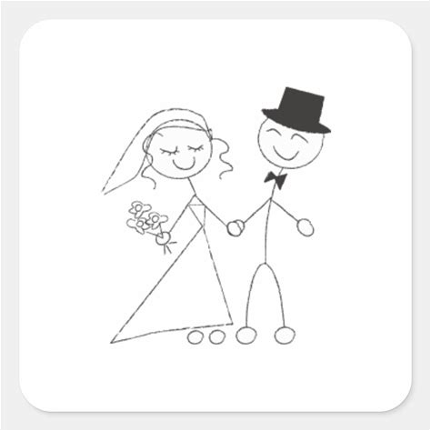 Cute Stick Figure Bride And Groom Wedding Square Sticker