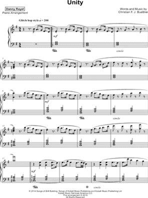 Unity Sheet Music By Danny Rayel - Piano Solo