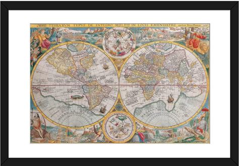Historic Map - Eastern Western Hemispheres - 28.85 X 23 - Vintage Wall Art