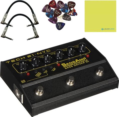 Tech 21 PBDR Sansamp Programmable Bass Driver DI 3-Channel Bundle W/ 2X Strukture S6P48 Woven Right Angle Patch Cables, 12X Fender Picks And Liquid Audio Polishing Cloth