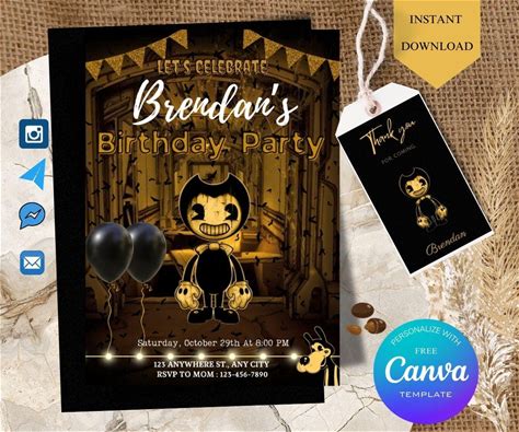 Editable Bendy And The Ink Machine Birthday Invitation: Printable Party Theme (Digital Download)