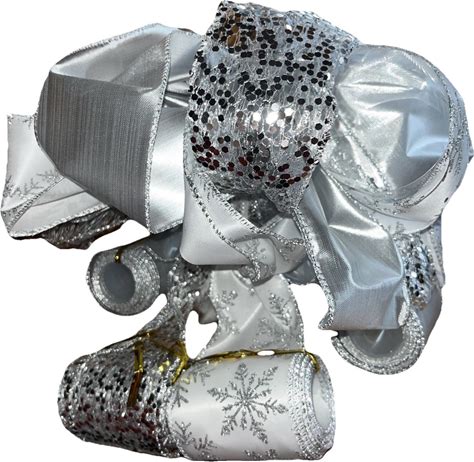 Christmas Tree Topper Bow 11 Silver White 6 Ribbon Tails 3 Yds Streamers Leeqe