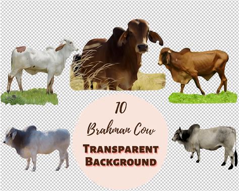 Brahman Cow Clipart Bundle - Transparent PNG Collection, Digital Prints, Watercolor, Pastel Color, Transfers For T-Shirts And DIY Projects
