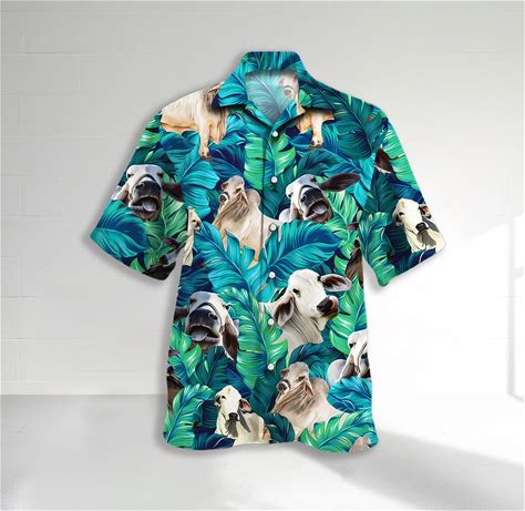 Brahman Cattle Cow Hawaiian Shirt, Men Short Sleeve Summer Tropical Beach Shirt. Hawaiian. Multicolor. Casual Button-Down Shirts.