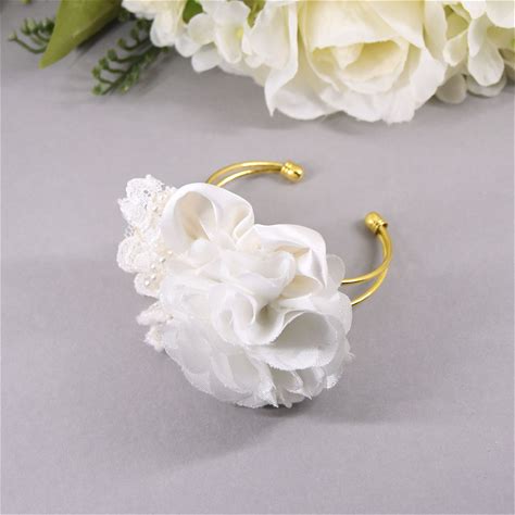 Warm White Flower Wrist Corsage: Bridal Bridesmaid Accessories