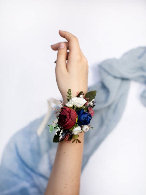 Bridesmaid Wrist Corsage, Burgundy Wrist Corsage, Prom Corsage, Bridal Flower Corsage, Navy Blue Corsage, Rustic Flower Bracelet