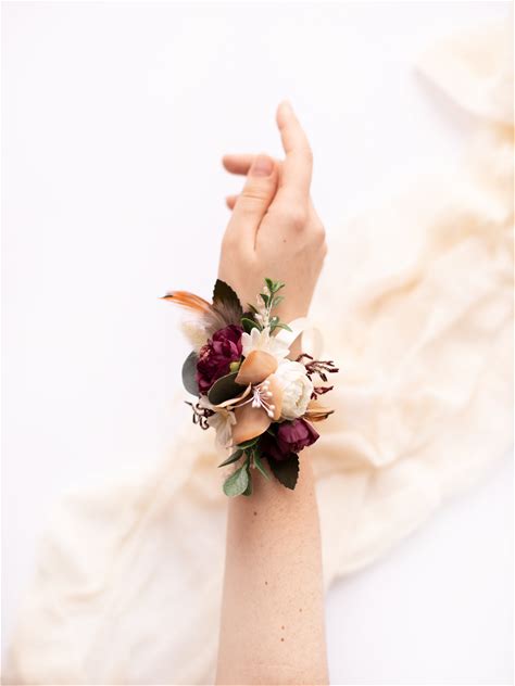 Bridal Flower Corsage, Boho Wrist Corsage, Maroon Floral Corsage, Bridesmaid Wrist Corsage, Wedding Flower Corsage, Purple Wrist Corsage