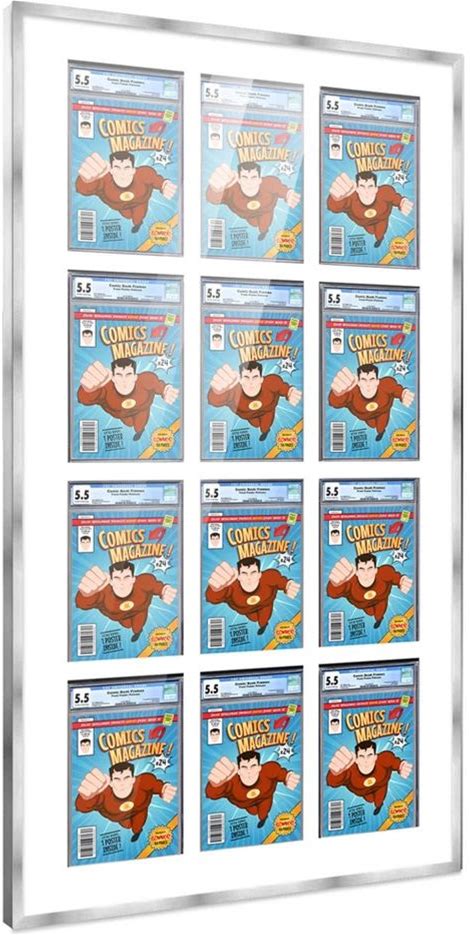Posterpalooza | Comic Book Frame For 6 Graded Comics - White Wood With White Mat Comic Frame - 54X16