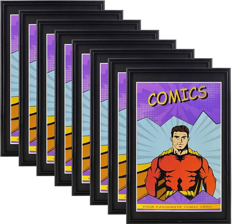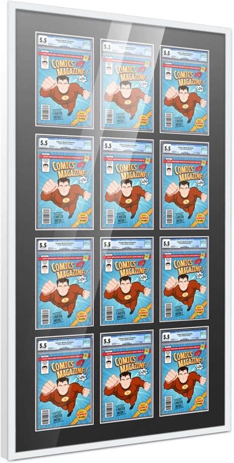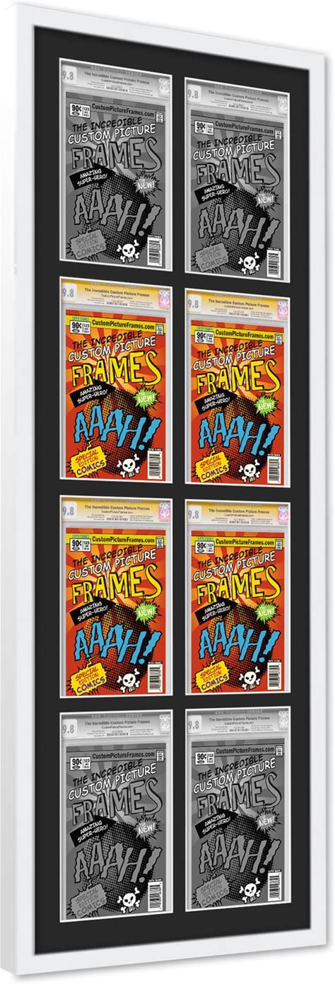 Posterpalooza | Comic Book Frame For 6 Graded Comics - Black Wood With White Mat Comic Frame - 54X16