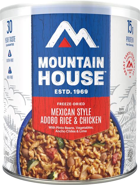 Mountain House Gluten-Free Mexican-Style Adobo Rice & Chicken Freeze-Dried Food For Camping, 7 Servings, 30-Year Shelf-Life