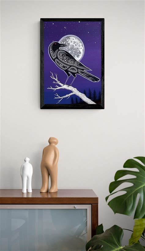 RAVEN TOTEM POLE Westcoast Acrylic Painting Corvid Crow Native American Indigenous Premi Hawaiians