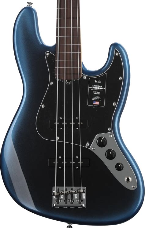 Fender American Professional II Jazz Bass Fretless - Dark Night With Rosewood Fingerboard Guitar 4-String Fretless Electric Bass With Alder Body,