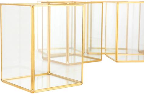 Koyal Wholesale Gold Geometric Hurricane Candleholders Set Of 6 For Wedding Centerpiece, Gold Lanterns For Centerpieces Home Decor, Patio Decor