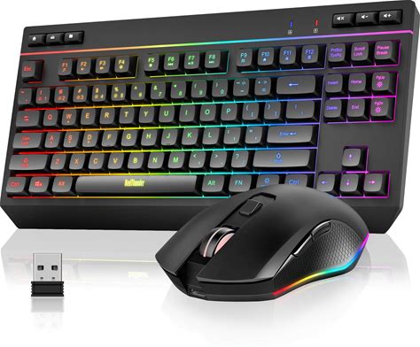 Redthunder K20 TKL Wireless Keyboard And Mouse Combo, Adjustable RGB Backlit Rechargeable Battery, Compact Layout Keyboard With Dedicated Multimedia