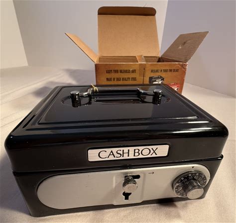 Locking Cash Box Black, Metal Toy For Kids W Combination Lock & 2 Keys