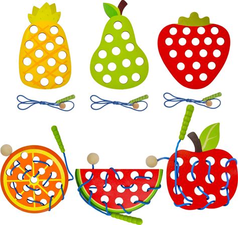 JCREN Wooden Lacing Apple Threading Toys Wood Lace Block Puzzle Shape Travel Game Toys Early Learning Fine Motor Skills Educational Gift For 3 4 5