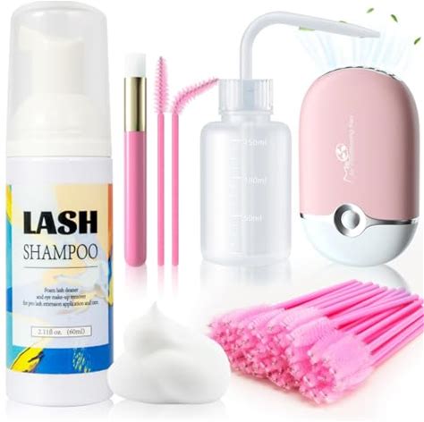 Buqikma Lash Cleaning Kit With Fan Dryer, 2PCS Lash Shampoo For Extensions Includes Rinse Bottle And Cleaning Brushes For Lashes Extension Cleaner At