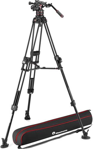 Manfrotto 612 Nitrotech Fluid Video Head And Aluminum Twin Leg Tripod With Middle Spreader