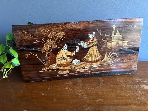East Indian Wood Inlay Marquetry, Vintage Wooden Wall Plaque, Vintage Indian Wall Hanging, Indian Marquetry