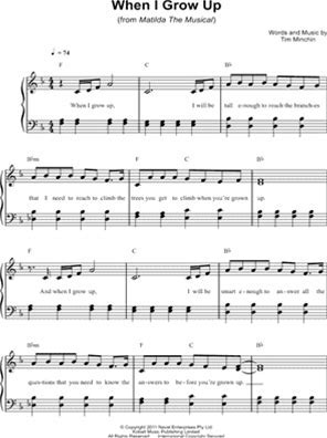 When I Grow Up Sheet Music From Matilda: The Musical - Easy Piano