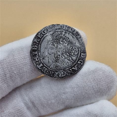 Genuine 1594 Elizabeth I Tudor Silver Six Pence - Woolpack Mintmark - Hammered Tudor Coin - England