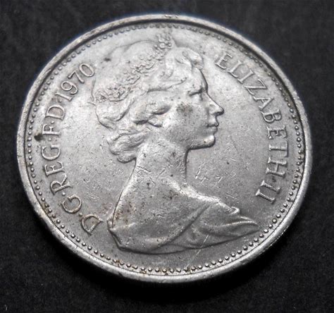 1970 5 Pence Queen Elizabeth II Coin, UK Great Britain 5 New Pence