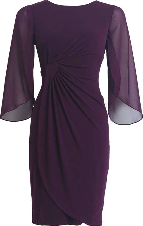 Connected Apparel Bell Sleeve Sheath Dress - Aubergine - 6