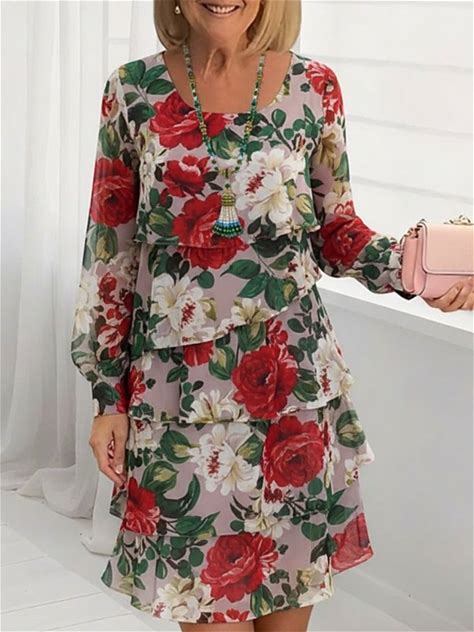 Women's Mini Dress Casual Dress Chiffon Dress Shift Dress Elegant Fashion Modern Daily Outdoor Weekend Regular Fit Floral Long Sleeve Crew Neck Green