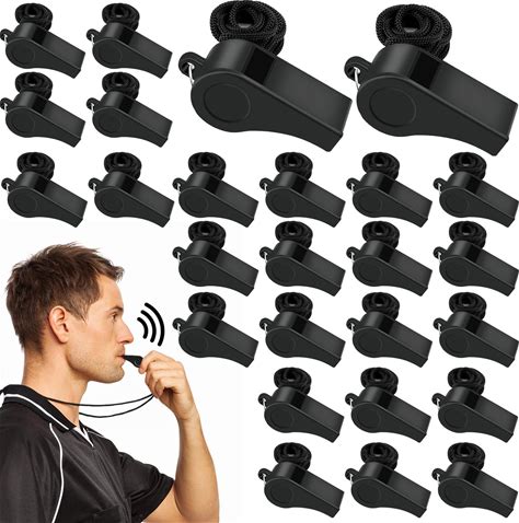 Fya Plastic Whistle With Lanyard, Loud Clear Black Whistles Bulk Great For Coaches, Referees, And Officials
