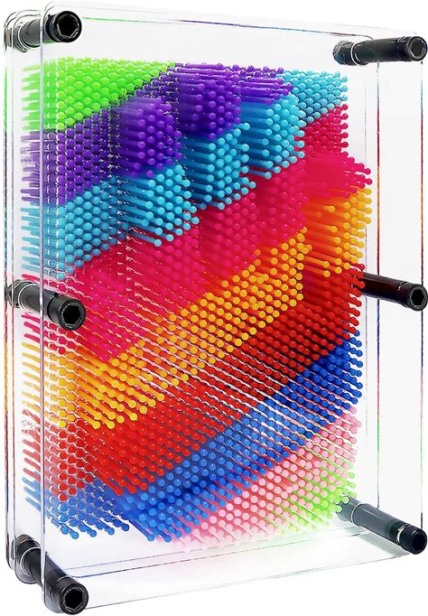 Zxzlda 3D Pin Art Board Gift Sculpture, Rainbow Sensory Gift Size 3.75 X 5, Plastic Pin Art Board Desk Gift Creativity For Kids, Adults, Home, Office Decoration, Multicolor (Small)