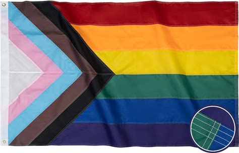 Flagolden Progress Pride Flag 3x5 ft Sewn Stripes Progressive Rainbow Flags For LGBTQ Gay Lesbian Bisexual Transgender Vivid Color Heavy Duty All